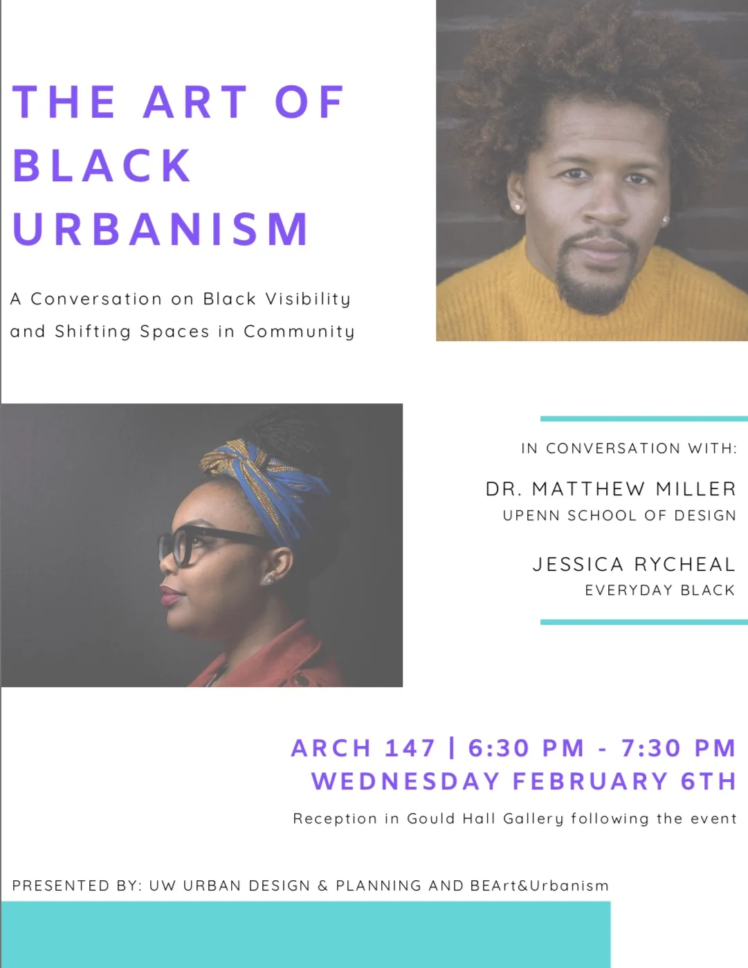 I am beyond thrilled to announce that, at the invitation of the Department of Urban Design and Planning at University of Washington’s College of the Built Environment and the BE(Art)&Urbanism Initiative, over a dozen images from my Black Urbanism project will be displayed for Black History Month in the Gould Gallery starting on February 6th.